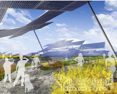 項目位于美國紐約州布法羅市,在美國紐約動力局與布法羅大學聯(lián)合舉辦的新"陽光公園"設計大賽中,Balmori設計室憑借"公共動力公園"從20個設計作品中脫穎,位居前三。設計在景觀中運用5000塊太陽板,為學生公寓提供能源,將園林綠化與能源設備相結(jié)合,力圖為公共空間提供能量。