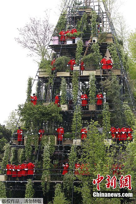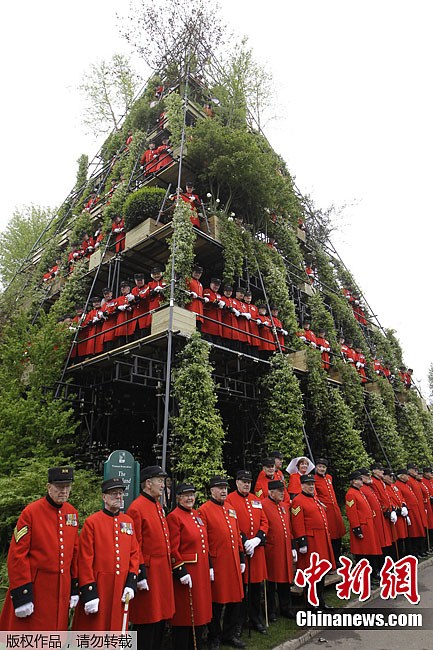 在5月19日舉辦的切爾西花卉展覽上,48歲的花匠DiarmuidGavin的作品“金字塔花園”給人們留下了深刻印象,成為整個(gè)花展的亮點(diǎn)。這個(gè)花園與眾不同,7層結(jié)構(gòu),高80英尺(約24米)。走進(jìn)花園的頂層,泰晤士河的全貌盡收眼底,令人驚嘆不已。整個(gè)花園里,花草數(shù)目和種類繁多,全憑鋼架的支撐,每層的植物各不相同,花園外面的古式樓梯和滑梯更是錦上添花。圖為21日,退休人員參觀“金字塔花園”。、