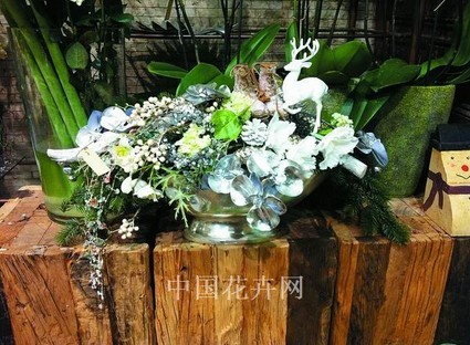 圖3:德國法蘭克福中心一家花店,作品是個典型的圣誕節桌面裝飾。