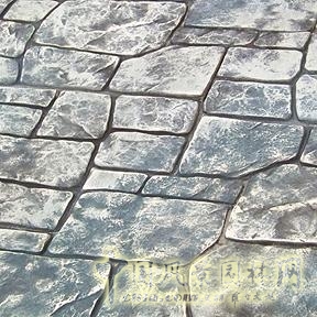 自然石頭加印了混凝土模紋就形成了一種不規則排列的花崗巖表面