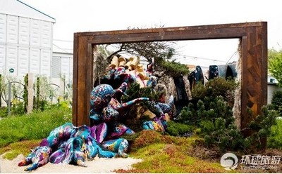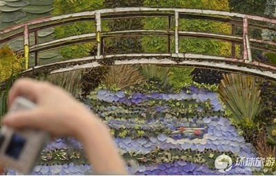 這個作品的靈感來自于莫奈的印象派繪畫,圖為一名游客在拍照。