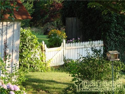籬笆可以為花園增加很多鄉村的氣息。略顯陳舊的籬笆既可以做花園的外圍,也可以做花園植物的背景。對籬笆粉飾以白色或保留其自然的木質,效果都很好。石頭墻也是一種花園外圍的選擇。