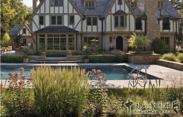 中國(guó)風(fēng)景園林網(wǎng)訊 粗大的煙囪和半遮蔽的木門(mén)使每一個(gè)英式風(fēng)格的花園都自動(dòng)帶上了“神秘”的標(biāo)簽,感覺(jué)里面總會(huì)有一些有趣的事物,就像一個(gè)衣柜給外面冰冷世界的魔幻誘惑……
