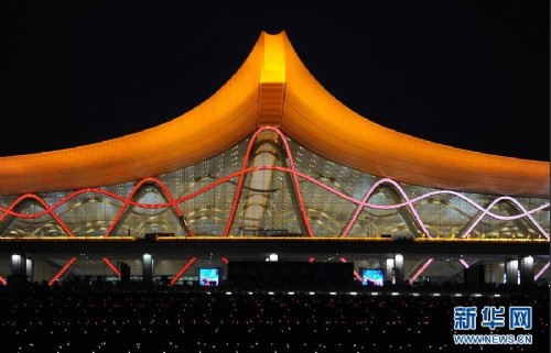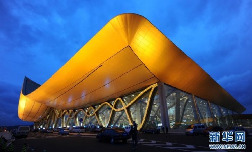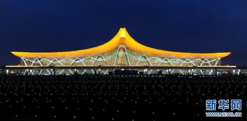 近日,昆明新機場——昆明長水國際機場燈光及照明景觀工程正式啟用,迷人的光影讓新機場宛如夜色中展翅的金鳳凰,呈現出美輪美奐的效果。曾為北京奧運會設計水立方燈光景觀的上海廣茂達光藝科技股份有限公司表示,新機場藝術燈光景觀系統、總線和控制系統同步控制數萬多套智能燈具,可創作豐富的藝術場景,同時節能省電環保,其景觀效果堪稱全球最美機場之一。昆明長水國際機場工程是國家“十一五”重點建設項目,屬于國家第四個門戶樞紐機場,將于6月28日正式啟用。(新華社記者秦晴攝)