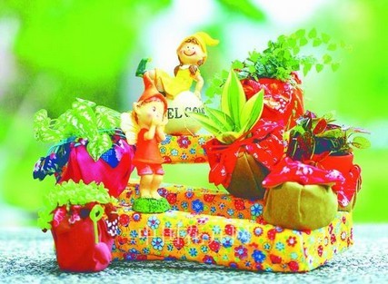 紡織品是臺(tái)灣人日常生活中隨處可見(jiàn)的材料,將織品融入花卉設(shè)計(jì),會(huì)營(yíng)造出不一樣的藝術(shù)氛圍。有時(shí),它呈現(xiàn)出毛織品的古樸;運(yùn)用精致的蕾絲花邊,又能變幻出浪漫的氣息,當(dāng)你以為僅止于此,印花織品遇上了植栽,它搖身一變又成了現(xiàn)代感十足的前衛(wèi)作品,或是充滿童趣的溫馨小品!原來(lái),花草盆栽和織品相遇,竟有創(chuàng)意無(wú)限的可能!