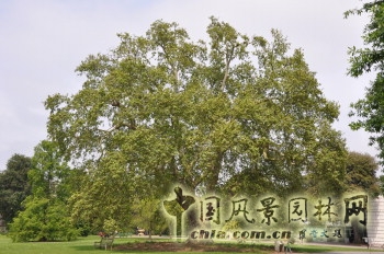 五棵"雄獅"里首先講到的當是這個法國梧桐,聳立在那條寬道北端,面對著甜橙溫室。以其小苗種植時,這棵梧桐樹已經在由18世紀三十年代邱園農場改建的白色建筑東側栽種應用過。