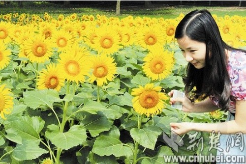 近幾日,武漢植物園3萬株向日葵露出金燦燦的笑臉,吸引很多游客前來欣賞。據介紹,因為前一段時間連續的高溫天氣,向日葵的生長期縮短,導致花期提前了50多天。