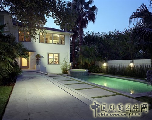 簡潔的線條和規(guī)整的幾何形狀給這個現(xiàn)代庭院一種寧靜的美