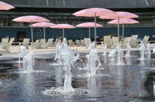 沙灘上有鮮艷的粉色沙灘遮陽(yáng)傘,還有標(biāo)志性的條紋躺椅。沙灘利用場(chǎng)地特點(diǎn)和周邊糖廠的特殊地理位置形成了最終景觀。公園包括沙灘、廣場(chǎng)和林蔭散步道。周邊的工廠特征形成了獨(dú)特的背景,糖果色的遮陽(yáng)傘等共同呼應(yīng)了公園“糖”的主題。公園里的廣場(chǎng)上還供舉行各種活動(dòng),周圍植被茂盛,是市民及游客在城市中享受大自然的好去處。