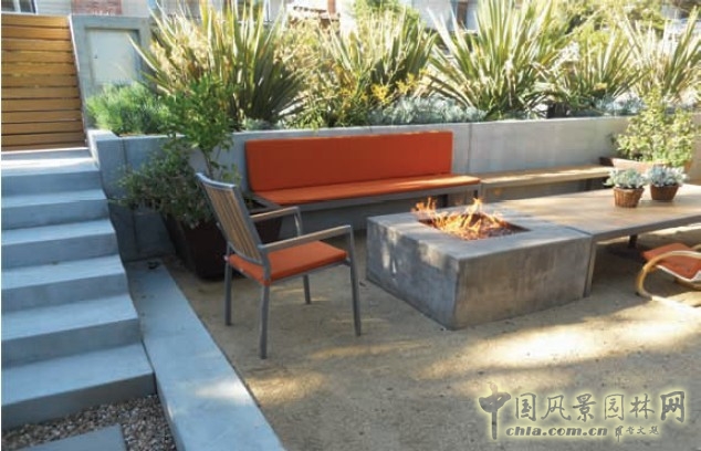 中國風景園林網訊 露臺、擋風板越來越多應用到現代景觀的設計中,常以規則的幾何體、光滑的表面和線形的設計表現,極和諧地與周圍建筑的窗欄搭配,體現出內外統一的整體感。