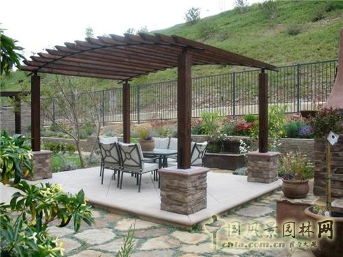 中國風景園林網訊 庭院里的蔭棚,不但可以遮陰避雨,而且可以提供出額外舒適的生活空間。