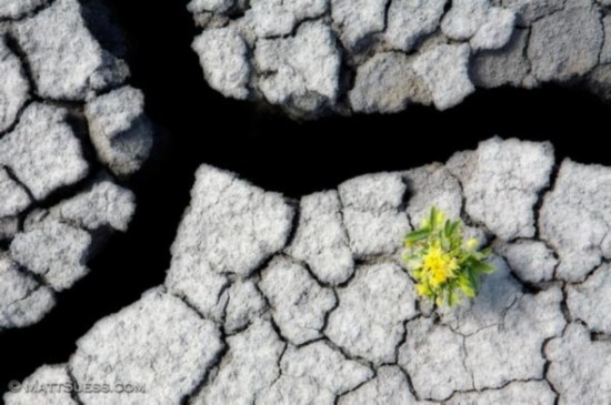 美國南猶他州干涸開裂的泥灘,一株開著黃色小花的植物堅強地活著,挑戰惡劣的生存環境。這幅照片由攝影師馬特-蘇斯拍攝。可惜的是,他并不是植物學家,不知道這個幸存者的真實身份。