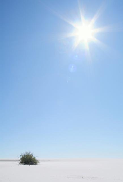 美國新墨西哥州的白沙國家公園,烈日下,一株植物正在茁壯成長。白沙國家公園的夏季炎熱,冬季寒冷,地表水和地下水均非常短缺,能夠在這種惡劣的環(huán)境下生存說明這株植物擁有非凡的適應能力。