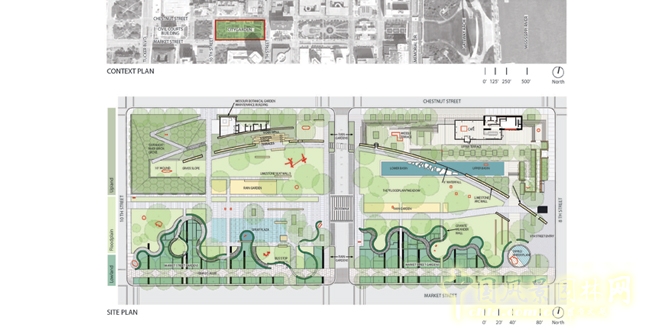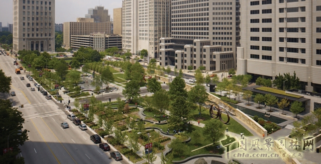 中國風景園林網訊 城市公園位于圣路易斯市中心葛特威購物廣場中央,占地3英畝,集休閑、娛樂、美感于一體的公共空間雕塑公園。