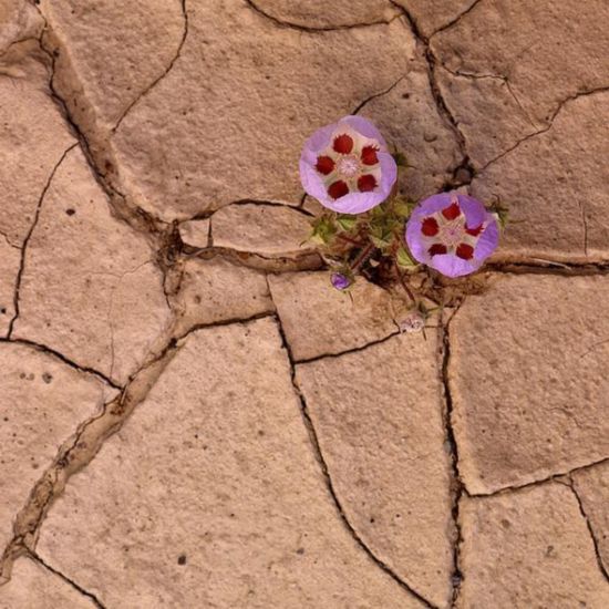 美國死亡谷國家公園,一株美麗的沙漠五點(diǎn)花在干涸的土地上頑強(qiáng)地活著。死亡谷不僅是美國最炎熱和最干旱的國家公園,同時(shí)也是北美洲溫度最高和最干旱的地區(qū)。死亡谷的最高溫度紀(jì)錄為134華氏度(約合56攝氏度),時(shí)間為1913年7月10日。而每年的降雨量只有38毫米,幾乎可以忽略不計(jì)。