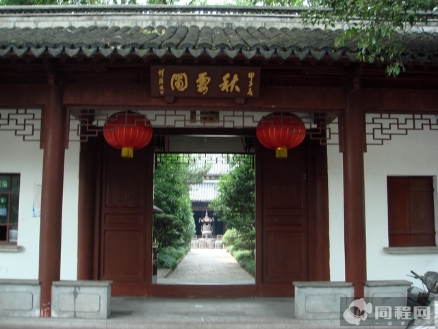〖西門樓、儀慰廳〗 西門樓為公園西南部入口,南向,門高5米,寬3.5米,系嘉定鎮清河路民居門樓移建于此。門樓上方塑以花鳥及紋狀圖案,樓脊上有吻獸,新增的“含芳凝露”磚刻門額為朱了然詞,陳從周書。儀慰廳又作義慰廳,始建于民國10年前后,毀于八一三兵燹,1981年按舊時式樣重建。廳位于西門樓西側,東向三楹,面積25平方米。其前后有兩院,步入門樓為前院,南側孤植女貞,東北隅有松竹湖石。園南的東西主干道越前院及廳中而過。廳檐懸“秋霞圃”行書額,系魏文伯1982年所書。后院以羅漢松、枸骨、慈孝竹、芭蕉、茶花與云層狀假山組成一幅精致的庭院小景,院北側有梅花形門洞通南山坡,門南北兩面題額為“幽賞”、“翠疊”。