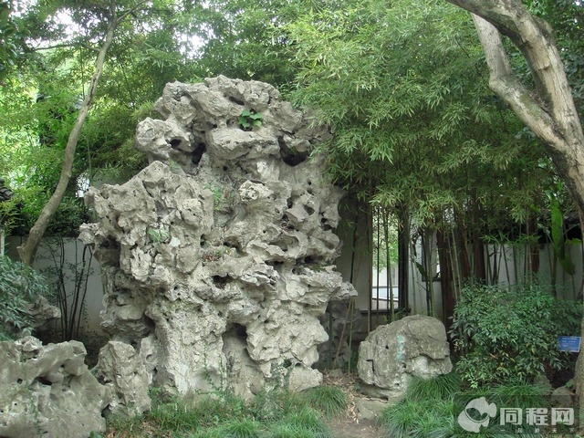 〖叢桂軒、三星石〗 叢桂軒位于桃花潭西,臨池向東,方形,面積49.5平方米。此軒始建年代無考,毀于太平天國之役,光緒十二年重建,1980年重修。軒東西兩面為清式格子門,南北兩面置落地花格長窗,四角有漏窗8扇,橋式穹頂,內陳明代紅木家具。原額已毀,1982年上海畫院唐云重題“叢桂軒”行書額。“叢桂”之名,出自《楚辭·小山招隱》:“桂樹叢生兮山之幽”。軒南側有門洞,兩面門額為“清芳”、“含芳”,系邑人浦泳所書。軒東沿池遍植迎春花、垂柳,南種芭蕉、翠竹,西有南天竹、金桂,北栽青松、臘梅;西側兩株金桂已逾百年。軒南側有酷似老態龍鐘的福、祿、壽星的三座立峰石,“壽星”居中,左“祿”右“福”,形神兼備,故名三星石。
