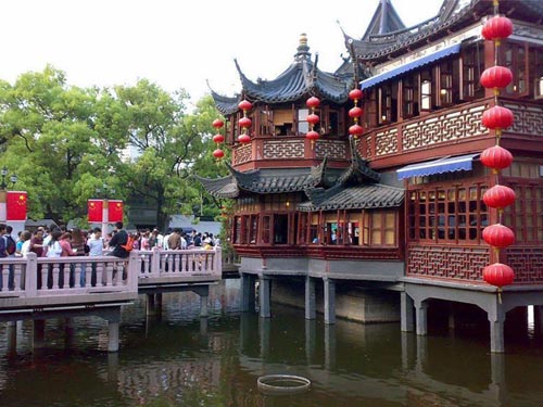 豫園始建于明嘉靖38年(1559年),萬歷5年(1577年)又加擴充,規模宏偉,被譽為“東南名園冠”。園主潘允端曾任四川布政使,建造此園是為“愉悅老親”,故名豫園。上海解放后加以全面修葺,1987年重建東部,恢復百余年前故景風姿,新舊諸景相映互彰,融為一體,實為游樂觀瞻之極佳去處。現占地30余畝,全園擅江南園林之勝,有萃秀堂、仰山堂、三穗堂、玉華堂、點春堂、萬花樓、會景樓、快樓、魚樂榭、大假山等40多處勝景。其中點春堂為1853年上海小刀會起義的指揮部。“玉華堂”前的“玉玲瓏”假山石是與蘇州留園的“瑞云峰”、杭州花圃的“皺云峰”齊名的江南園林三大奇石之一。