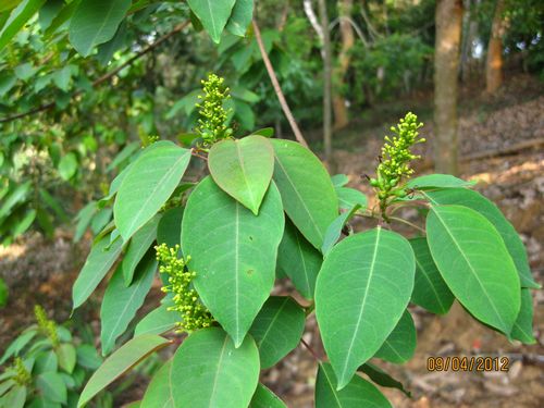 荒山野嶺、溝谷林緣常見它的蹤影,在我國它是一個廣布種,多分布于兩廣、云南、貴州、江西、浙江、福建及臺灣,國外印尼也產(chǎn)。其性狀為常綠小喬木,葉橢圓狀卵形,葉柄細(xì)長,花單性,雌雄同株,穗狀花序頂生,花期3-5月。蒴果球形,果期4-8月,熟果黑色。它就是大戟科植物山烏桕(Triadica cochinchinensis Lour.),又稱山桏、紅葉烏桏。據(jù)資料記載,山烏桕葉根有毒可做藥,種子含油率達40.83%(原中科院云南熱植所測定),可用作工業(yè)油料。雖然國內(nèi)外對其有很多研究報道,但對它的開發(fā)利用卻很少。