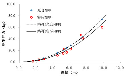 上海植物園在與華東師范大學(xué)緊密合作下,通過(guò)砍伐實(shí)驗(yàn)建立了城市主要骨干植物的冠幅與生物量、生產(chǎn)力關(guān)系模型,這將有助于通過(guò)遙感參數(shù)自動(dòng)提取的方法,進(jìn)行綠地碳儲(chǔ)量和碳匯計(jì)算。模型結(jié)果表明:上海香樟單株植物平均每年產(chǎn)生的凈生產(chǎn)值是生物量的23%。