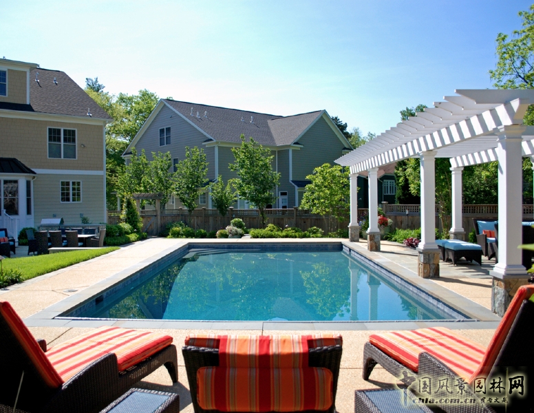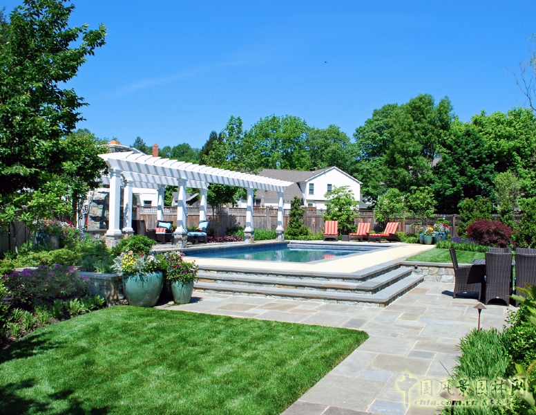 還有很多細(xì)節(jié):石頭墻和地鋪圖案中都鑲嵌滿了2英尺厚的石板,墻壁頂部和柱子達(dá)成的蓋、定做的柵欄、涼亭和棚架式長廊修飾完成。一個真正的設(shè)計緊張的開始了。