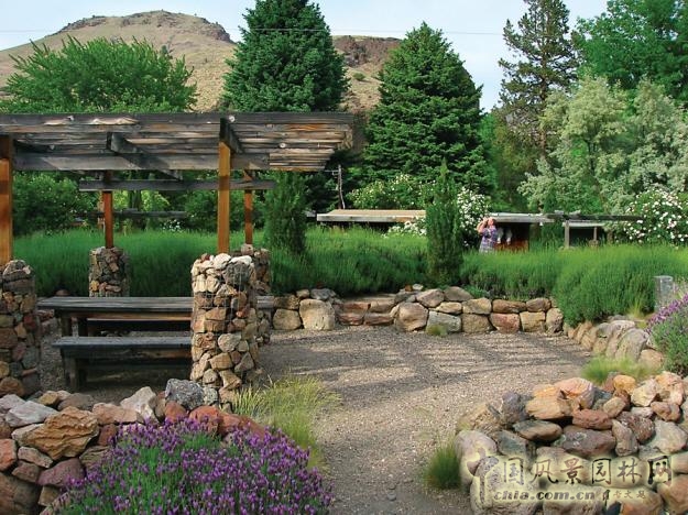 山脈間種植了各式當(dāng)?shù)刂参?,如薰衣草、?xì)葉芒、叢生禾草、黃楊、橄欖樹(shù)。莊園周圍墻壁是應(yīng)用山崖上的巖石堆砌而成,戶主還養(yǎng)殖了一些當(dāng)?shù)氐膭?dòng)物,并收集了牛骨、鹿角等做成一些渦旋或球面的雕塑。