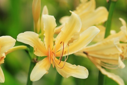 石蒜屬植物不但觀賞性高,耐陰力也是相當強的,全光照條件下能開花,在光照15—20%的地方也能生長開花。種植后只要成活,很少有病蟲害,植株穩定。由于夏季枯葉,種植時最好能和常綠或其他宿根植物相配置。