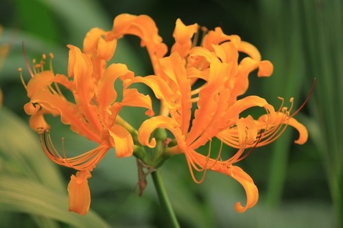 石蒜類植物是一種球根花卉,地下有球形的鱗莖,開花后鱗莖會產生兩個側芽,當葉片枯黃萎縮時就形成兩個新球。如果肥力足,新球大,下年會開花;長勢弱,新球小,則要再過一年才開花,所以其自然繁殖也是比較緩慢的。通過科研攻關,上海植物園已經掌握了快速繁殖的技術,目前來看推廣應用是關鍵的環節。
