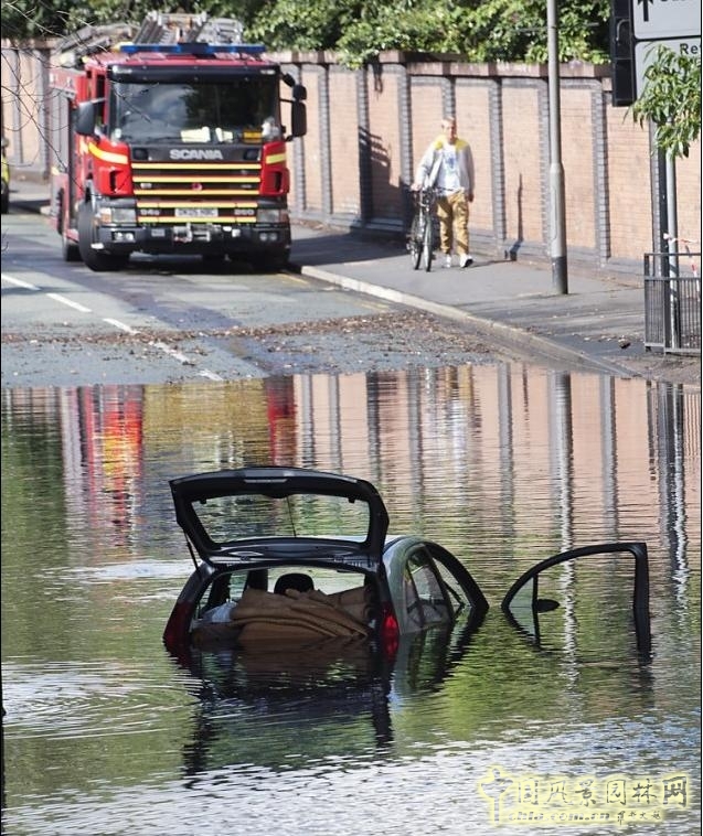 在短短20分鐘內(nèi)暴雨驟降,聚集在蘭開夏郡-斯伯頓街區(qū),司機(jī)發(fā)現(xiàn)自己開車穿行在幾英尺深的雨水中。
