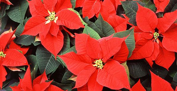 【一品紅(Euphorbia pulcherrima),常被用于圣誕節應景,又名圣誕紅。它的紅色部份是不是很像花?其實這只是總苞,真正的花是中間那坨。圖片來自wiki commons】