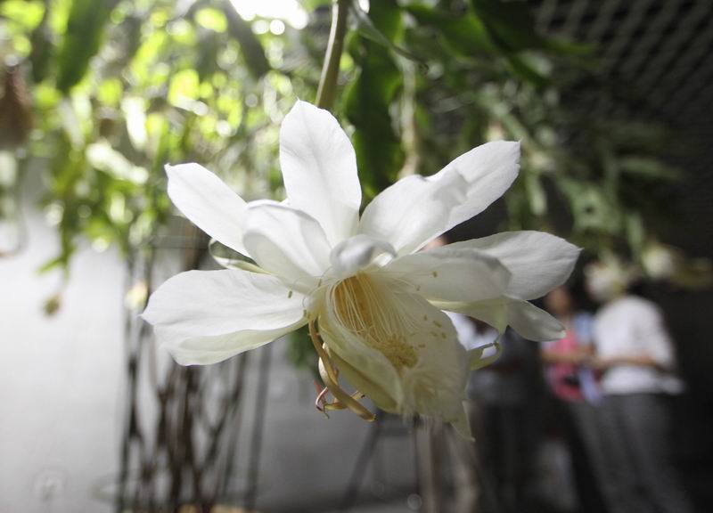 27日,北京植物園熱帶展覽溫室內的一株曇花悄然開放,美麗的花朵吸引了眾多游客的目光。在游客贊嘆曇花美麗的同時,很多游客也驚異的提出,曇花不是晚上開嗎?怎么這里的曇花在白天開花了?其實這是植物園的工作人員使用了“顛倒黑白”的養護措施,使得在夜間開放的曇花可以在白天與大家見面。由于曇花的花期較短,植物園的工作人員預計8月28日即進入這株曇花的末花期。