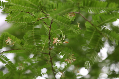 酸豆(Tamarindus indica),別名酸角、酸梅、羅望子。豆科酸角屬,常綠高大喬木,偶數羽狀復葉互生,小葉10-20對;總狀花序生枝頂,花萼狹陀螺形,黃色,檐部4裂,花瓣黃色,雜以紫紅色條紋,僅后方3片發育,倒卵形,邊緣波狀,前方2片退化呈鱗片狀,藏于雄蕊管基部;莢果長圓柱形,不開裂,褐棕色,常不規則縊縮。原產非洲,現各熱帶地區均有栽培。