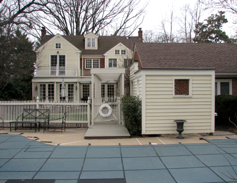 多重添加物與人字形黑色金屬屋頂的玄關很難和諧統一。在主要生活區,建了一個極大的覆蓋式門廊。廊下方柱支撐,藤架式長廊下的悠閑雅座,以及新植入的更衣室,所有變更聚在一起。游泳池進行了總體改造,以確保新游泳池整體效果與游泳池的瓷磚和設備相匹配。考慮到方便進入游泳池,添加了從泳池后面到居住區間的一條通道,游泳池裝備將被移到泳池別墅的一側。