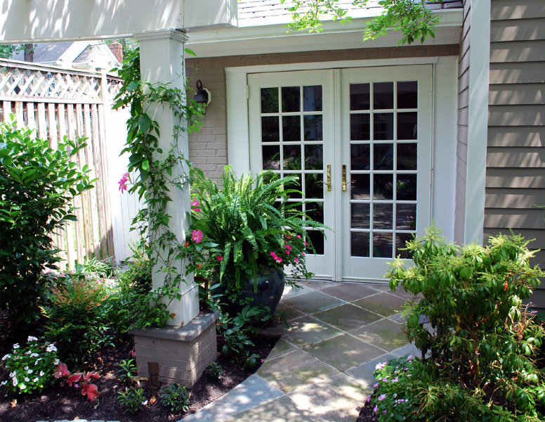 從前面進入游泳別墅的路徑也被重新設計,拆除了棚架區,添加了法式大門。新從盆栽棚中取出的盆栽沿著建筑紅線布置進來。下一步要做的是,添加新的硬質景觀,使庭院的各個角落都感到那么舒適。景觀植物郁郁蔥蔥,充滿質感,長年色彩絢爛,一派地中海式風光。大量的建筑結構和硬質景觀之間的搭配,需要一根有益健康的調節棒,庭院中種植多年生植物和一年生植物的混搭組合,極具柔韌特色的解決了這一問題。