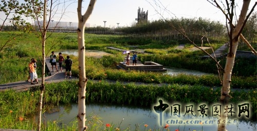 3.小道與平臺:有很多小道連接池塘和土丘,池塘的周圍還有一些平臺和座位,可以滿足人們很好地親近自然。