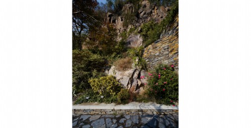 人造石、自然石、旺盛的植物統(tǒng)一而生