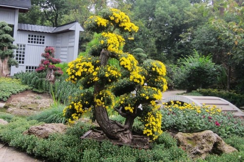 此次花展,還結合我國豐富的園林造景藝術,輔以建筑小品、亭臺涼亭、民族風俗等方式,多角度體現菊花美麗多姿、素雅清秀的神韻。