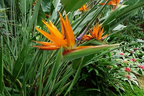走進上海植物園展覽溫室(一),一群“紅冠仙鶴”高昂腦袋。咦,難道是眼花了么?其實那是酷似仙鶴的植物——鶴望蘭怒放枝頭。