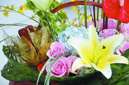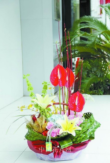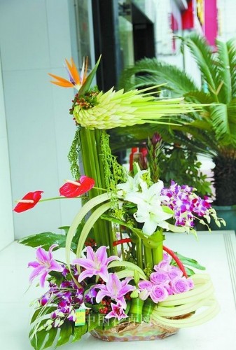 這三組作品出自桂林綠世界花藝城,精美的紅酒花籃、寓意吉祥的“富貴團圓”花禮,可謂商業(yè)性與藝術性的完美結(jié)合。