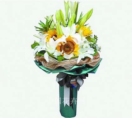 這兩款有都市花鄉(xiāng)設計的中秋花束,選用了應季花卉向日葵以及寓意團圓的百合作為主花材,極富節(jié)日特色。
