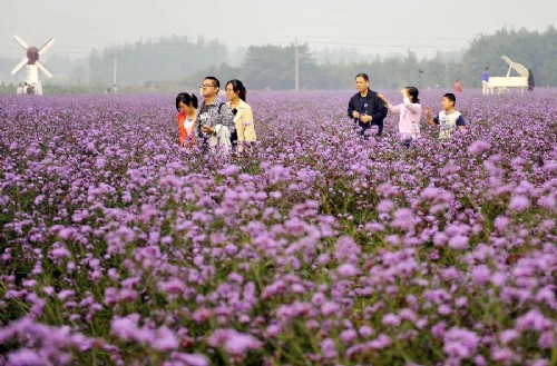 日前,山東濟南東郊各種大面積種植的花卉進入盛花期,百畝薰衣草園等吸引眾多市民前來觀賞。