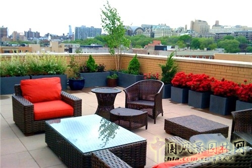 受空間和戶外暴曬條件的限制,屋頂花園的家具擺設需要考慮具一定抵御天氣的特征;在應對一些特殊天氣時,還需將其搬運保護,因此家具重量不宜太重。同時還需考慮所占空間,不能影響欣賞的視線。