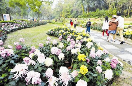 上海:幾十萬株菊花共青森林公園過節亮“身段”