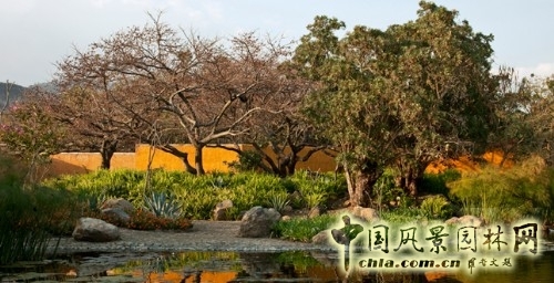 水池、巖石、古樹