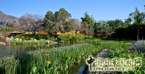 距離房屋最遠處沿著河流的較高層,是在建設過程中不斷堆土形成,最后形成具有谷地叢林感覺的戶外活動場所。以收集了不斷吸引蝴蝶的橙色燈籠、成片的龍舌蘭和巖石為特點。同時,在一側還有柑橘園和菜園,以及大量的樹。