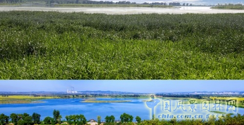 蓮花湖生態濕地,下圖為鳳凰山上俯瞰公園圖