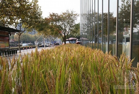 杭州市江干區慶春東路一個售樓處花壇里種的成片水稻,已滿眼金黃,頗具觀賞價值。水稻當花“養”,引得路人紛紛駐足。