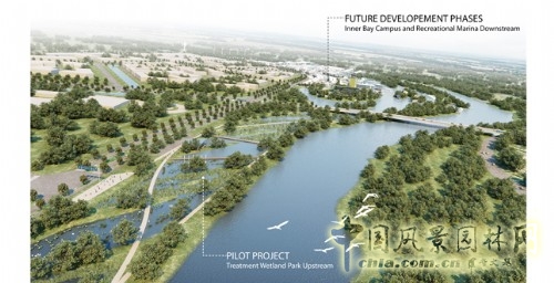 項目是以改造吳淞河部分濱江區(qū)為愿景,針對吳淞河的舊工業(yè)取土坑和退化的水系統(tǒng),實現(xiàn)水體凈化的水處理試點工程,和將其濱江區(qū)改造成為野生物的棲息地、公共教育地以及吳淞河生態(tài)發(fā)展區(qū)的濕地公園景觀模式。