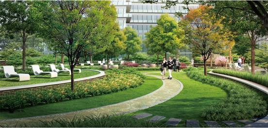 休閑草地有著開場的空間,能夠感受高爾夫般的空間氣質(zhì),退臺草地相對私密,可以盡情享受午后的陽光。