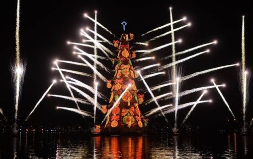 圣誕樹周圍還舉行了一場6分鐘的煙火表演,吸引大約10萬名觀眾。
